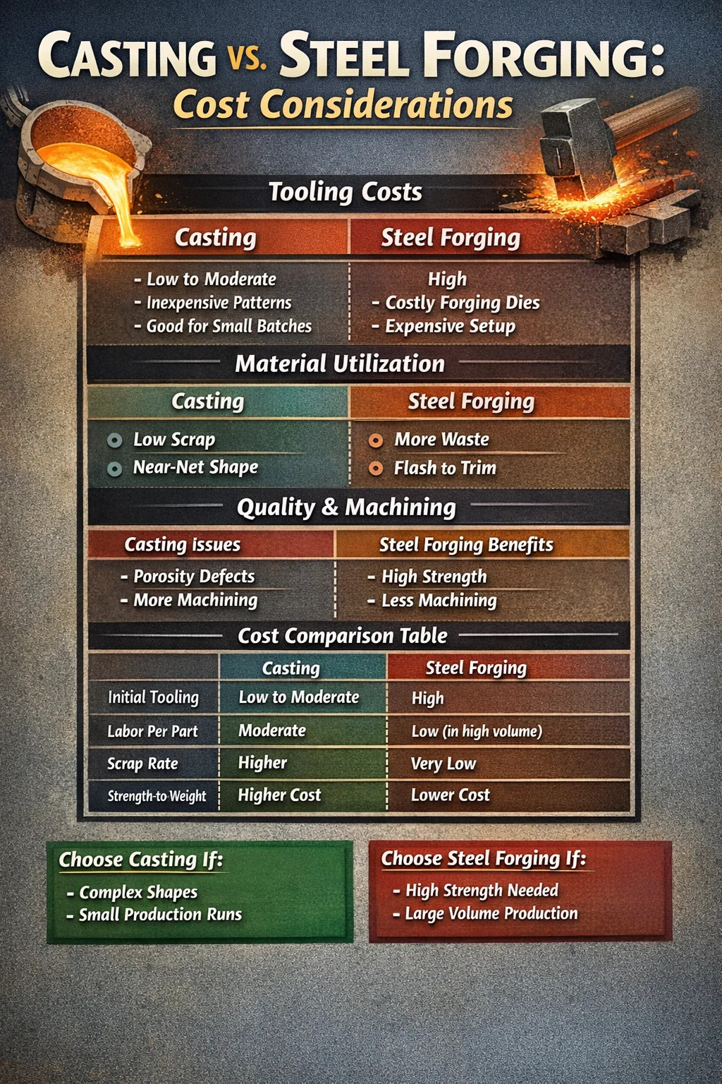 El presupuesto para un nuevo proyecto comienza con las herramientas. La fundición y la forja tienen costos de entrada muy diferentes que dictan qué método puede elegir un gerente de compras.
